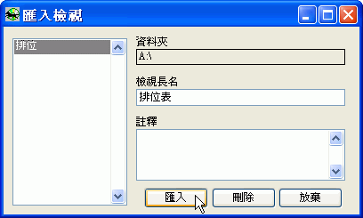 | 10. | 在左邊的檢視列表中選取您想匯入的檢視,然後按一下 [匯入] 鍵。 |