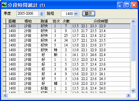 投注樂 8.0 加入了一新的分段時間統計表單,表單顯示了不同距離、場地、賽道和班次的組合下的平均賽事分段時間,您可以在表單之中進行多行排序以作分析。